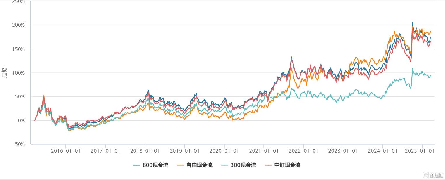 从历史业绩表现来看,2016年至今,300现金流指数较为逊色,自由现金流、800现金流和中证现金流表现较为贴近。