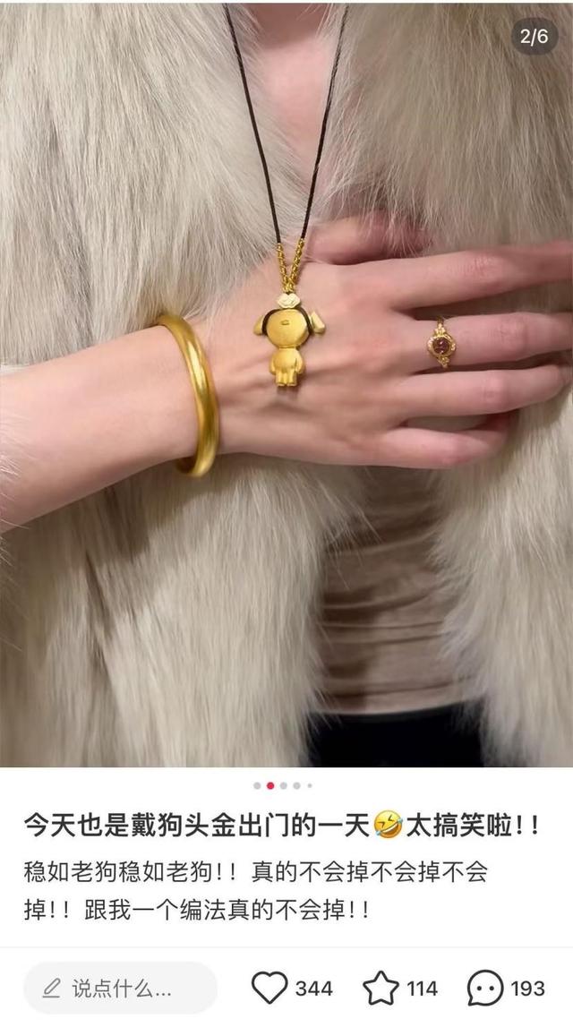 京东“狗头金”不仅具备较高的投资价值,其独特的造型和精美的工艺,也让它成为了众多年轻人时尚搭配的新宠。目前,已有不少网友在社交平台大方分享这款“狗头金”的趣味佩戴形式。