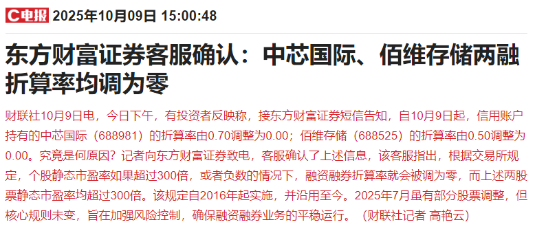 至于中芯国际、华虹跳水的原因,我觉得主要还是涨太多了,然后中芯国际两融折算率调为零的消息是催化剂,不过“个股静态市盈率如果超过300倍,或者负数的情况下,融资融券折算率就会被调为零”的规定早就有了,并不是交易所主观的为了防止风险而下调。