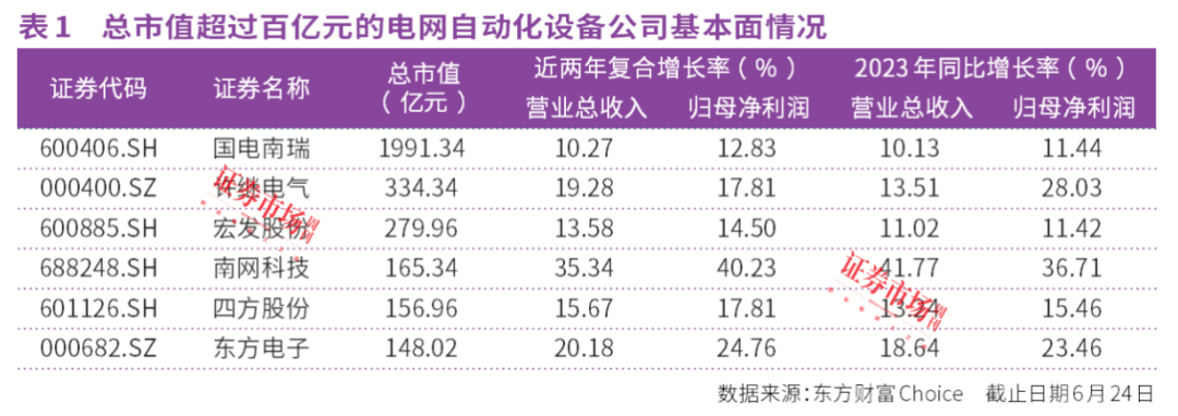 据东方财富Choice数据,国电南瑞营业总收入和归母净利润两年复合增长率分别为10.27%、12.83%,而同行业的南网科技、东方电子、许继电气、四方股份、宏发股份营业总收入两年复合增长率分别为35.34%、20.18%、19.28%、15.67%、13.58%,归母净利润复合增速两年复合增长率分别为40.23%、24.76%、17.81%、17.81%、14.5%。