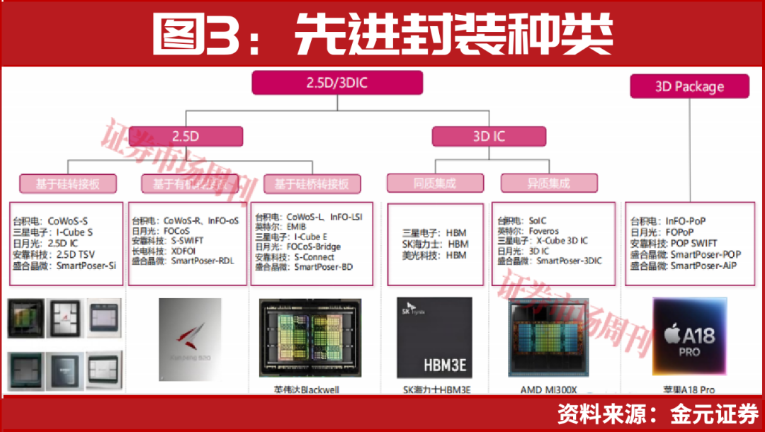 近年来,A股集成电路封测龙头纷纷布局先进封装技术与产线。先进封装可大致分为2.5D、3D IC及3D Package。3D IC与3D Package的区别在于前者强调裸片的直接集成,后者更多是封装体之间的集成。