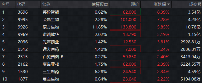 荣昌生物诺诚健华、康方生物等绩优股涨幅亦居前列。根据个股最新发布的2025年年报,荣昌生物盈利7亿元,同比增长逾148%!诺诚健华营收净利双双翻倍增长,其中净利暴增245.8%!康方生物2025年实现新药销售收入30.33亿元,同比增长51%。