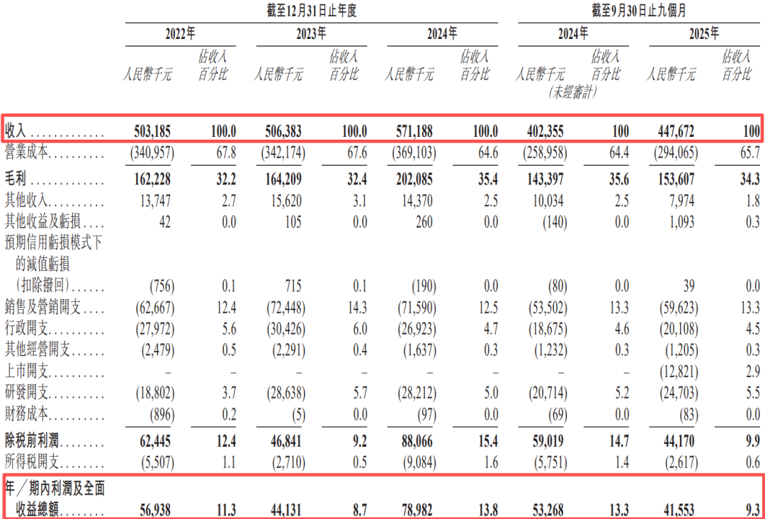 2022年至2024年以及2025年前九个月,铜师傅收入分别约为5.03亿元、5.06亿元、5.71亿元、4.48亿元,其中铜质文创产品贡献收入占比均在94%以上。