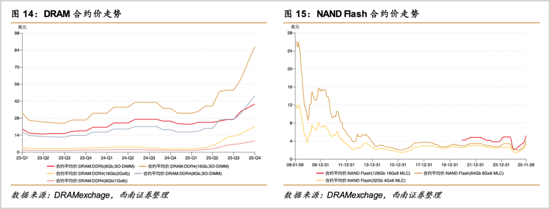 而标准型DRAM和NAND存储则由于大厂产能倾斜,引发供给收缩,带来供需错配,呈现显著的“涨价周期”。