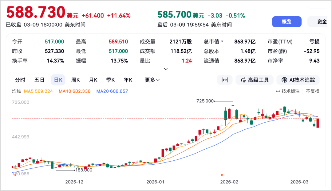 3月9日晚,受地缘局势缓和预期影响,美股芯片股集体拉升。