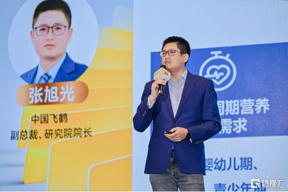 (中国飞鹤副总裁、研究院院长张旭光在分论坛分享飞鹤科研成果及产品布局)