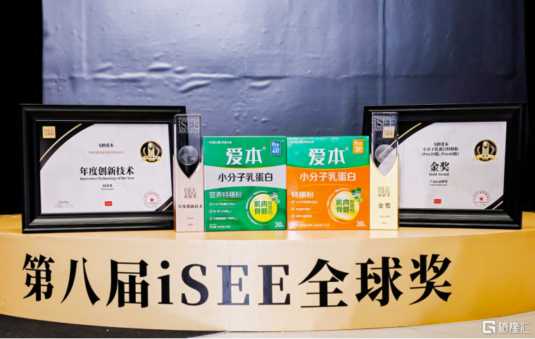 (乳蛋白鲜萃提取科技,获技术类年度创新技术奖,飞鹤爱本小分子乳蛋白特膳粉系列,获产品品牌类金奖)