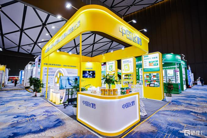 (全球食品饮料创新博览会飞鹤展台,展示"全龄营养"与"全生命周期产品"完整矩阵)