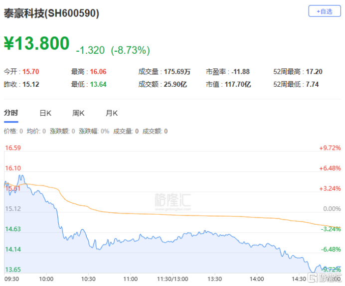 泰豪科技(资金流出+此前涨幅较大+军工板块分化)