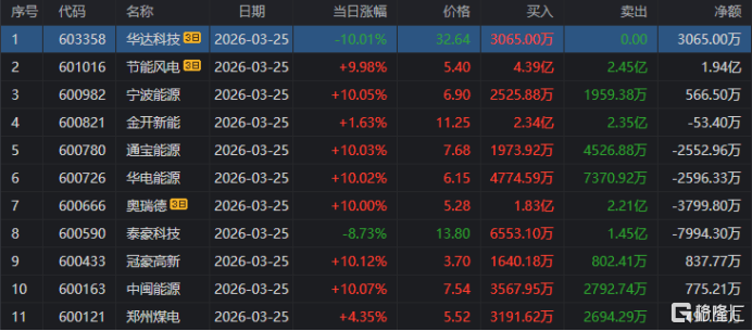 杭州帮:净买入华电能源7616万元、韶能股份3892万元;净卖出立讯精密1.184亿元
