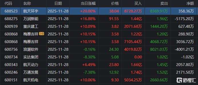 方新侠:净买入航天动力7478万元、航天发展6641万元