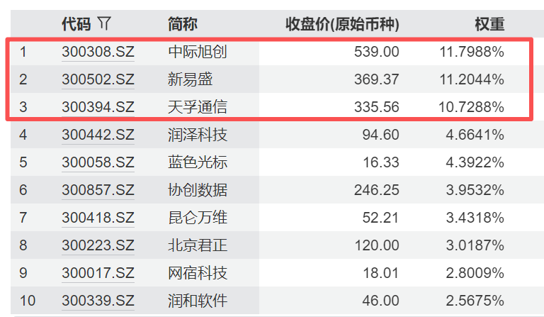 创业板人工智能ETF招商(159243)其实是个省心省力的办法,它跟踪的指数覆盖了AI硬件、软件、应用全产业链——前三大重仓股中际旭创(11.8%)、新易盛(11.2%)、天孚通信(10.73%)都是光模块龙头,直接吃算力基建的订单;软件和应用那边也配了一些,能蹭上模型迭代的弹性。