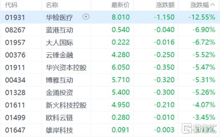 加密货币概念股大跌,华检医疗跌超12%,蓝港互动、大人国际跌超6%,云锋金融、博雅互动、金涌投资等跟跌。