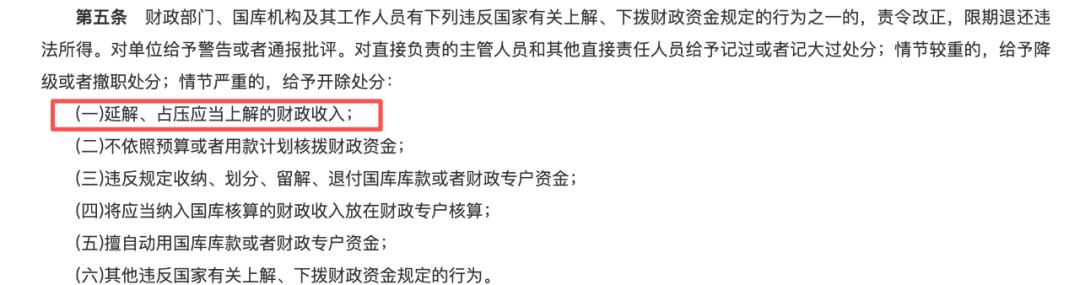 《财政违法行为处罚处分条例》明确了,占压应当上解的财政收入等,属于违反该条例的行为。