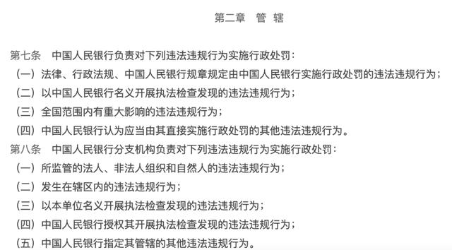 根据《中国人民银行行政处罚程序规定》第二章,央行除了按相关法律法规规定实施处罚外,还对全国范围内有重大影响的违法违规行为进行处罚。