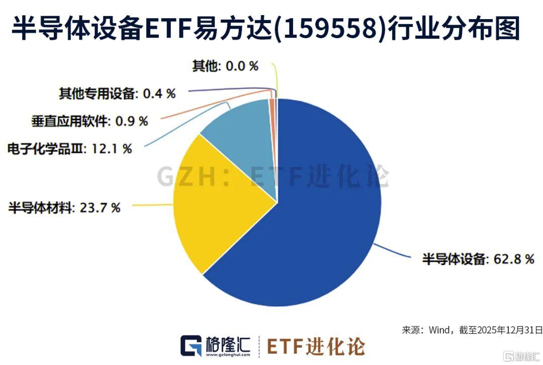 半导体设备ETF易方达(159558)跟踪的半导体材料设备开年三个交易日飙涨18.13%,成为最猛的ETF指数!