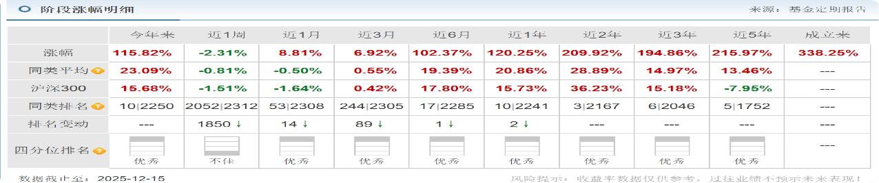 笔者还发现,景顺长城智能生活混合A业绩也不错,自2019年成立至2025年12月中旬,累计净值涨幅已达251.38%,同期业绩比较基准仅上涨20.59%,超额收益高达239个百分点。今年来收益率89.50%,近1年收益率95.05%,近2年来收益率112.12%,近3年来收益率89.08%,近5年来收益率69.68%。如此“现象级”表现并非偶然,而是多重因素叠加、形成合力的结果。