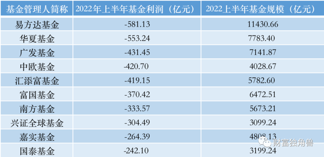可能会有投资者朋友要说,这两年市场震荡,基金公司普遍表现都不好。但与今年上半年亏损前十的基金公司对比来看,中欧基金非货基规模虽不大,但亏损能力名列前茅。比如,其与广发基金规模相差超3000亿,但亏损额却很接近;其与嘉实基金规模相差不大,但亏损金额比嘉实多出156亿。