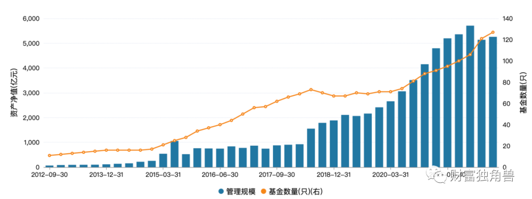在行情和营销的刺激下,中欧基金的规模像打了肾上腺素,相比2018年,2019-2021这3年时间规模暴增203%,达到了5709亿。