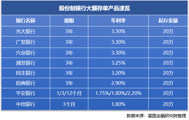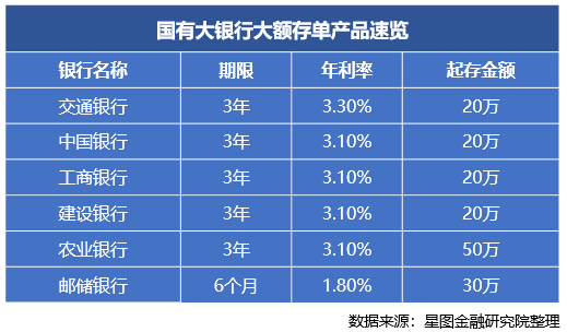 星图金融研究院调研发现,国有大银行、股份制银行、城商行、互联网银行发行的大额存单利率,呈现由低到高趋势: