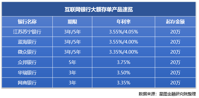 综合比较下来,江苏苏宁银行、蓝海银行、微众银行的大额存单产品的利率博得头筹。