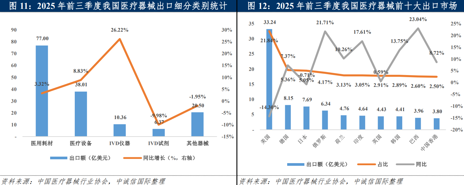 整体来看,2025年以来,我国医疗器械出口在复杂贸易环境下展现出强劲韧性。
