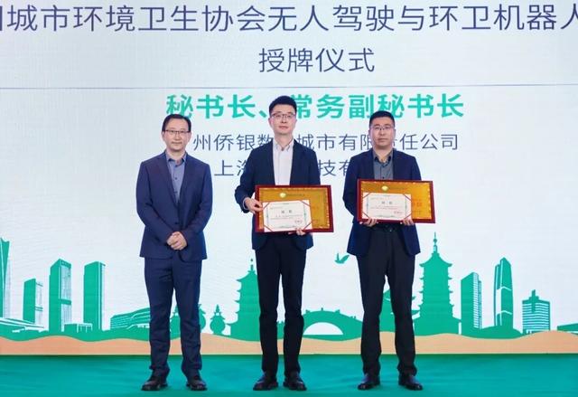 现场为无人驾驶与环卫机器人专委会的成立举行了授牌仪式,为专委会主任委员、常务副主任委员、秘书长、常务副秘书长、副主任委员及单位、专家代表授牌。
