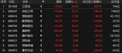 昨晚美股闪迪暴涨近17%,美光涨超4%,另外昨天德明利出了个小作文,市值拍的很离谱。今天A股存储板块继续狂飙,江波龙、德明利、深科技等多股涨停。