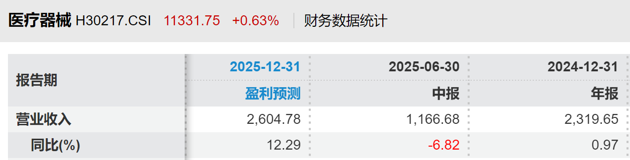 招投标增速这么快,这说明需求是真的起来了。照我的经验,医疗器械公司的业绩素有“前低后高”的脾气,这些订单很可能在三季度甚至更晚时候,才会在财报上给我们惊喜。万得预测,医疗器械指数今年营收预计同比增长12.29%也是一个印证。