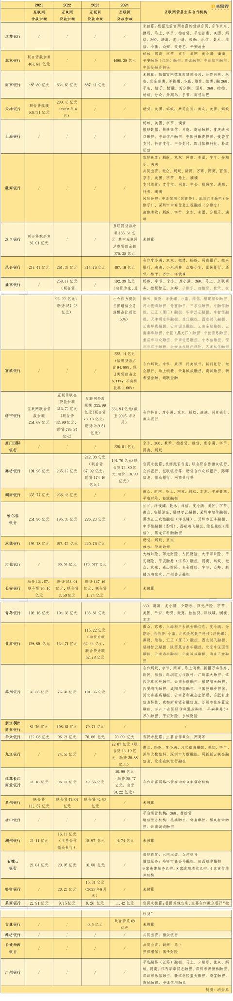 城商行互联网贷款规模及合作平台