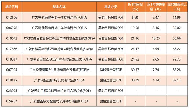 注:广发养老目标2055、广发智荟多元配置成立不足半年,相关数据不予展示。