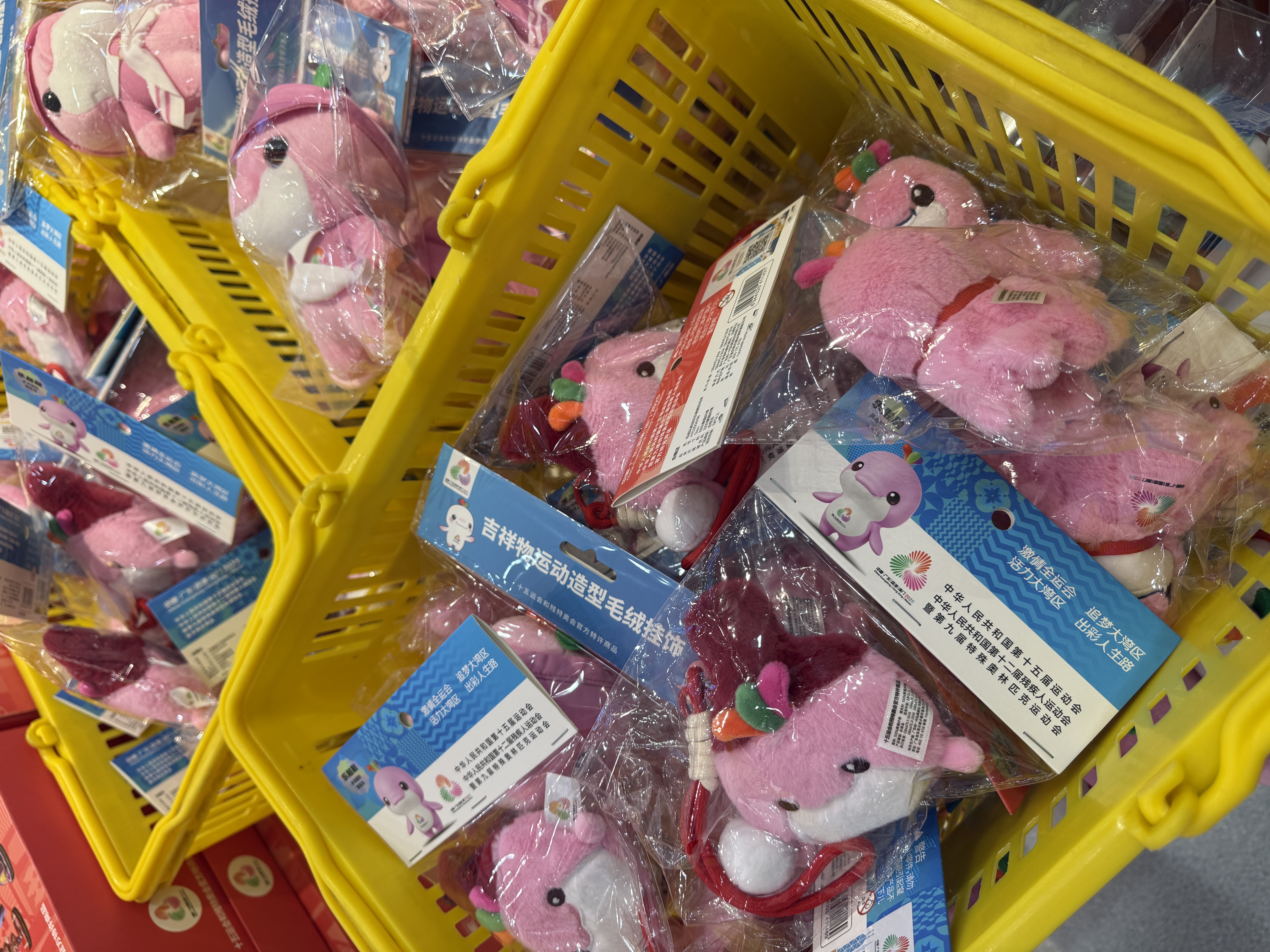 “盲盒已经售罄了,要明早才补货。大家注意秩序,自行选购!”11月10日傍晚6点,广州市天河区一家全运会官方特许零售店人头攒动,店员扯着嗓子喊。货架上第十五届全运会吉祥物“喜洋洋”“乐融融”的周边正被消费者们抢购,店员们每隔几分钟便要进行一轮补货。