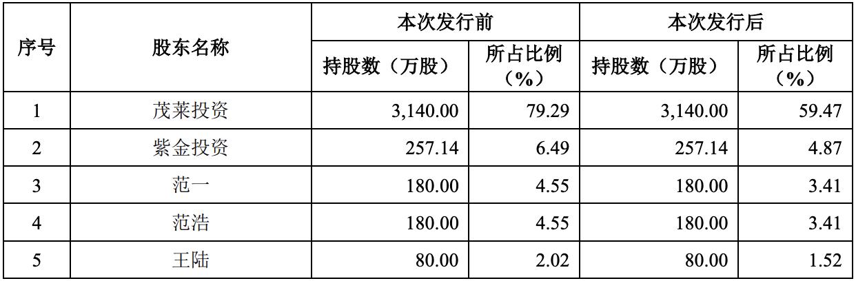 其中,范浩对茂莱光学的直接持股比例为4.55%,也是该公司董事长;范一为该公司董事、总经理,直接持股4.55%。此外,茂莱光学副总经理、董事会秘书王陆直接持股2.02%,首席技术官周威直接持股0.51%。