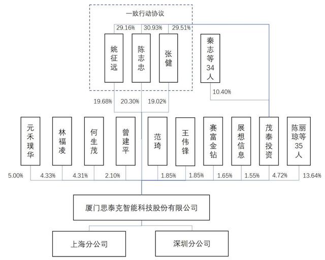 据招股书披露,陈志忠、姚征远和张健直接及间接持有思泰克63.22%股份,为该公司控股股东及实际控制人。其中,陈志忠为思泰克董事长,姚征远为该公司董事兼总经理,张健则为董事兼副总经理。