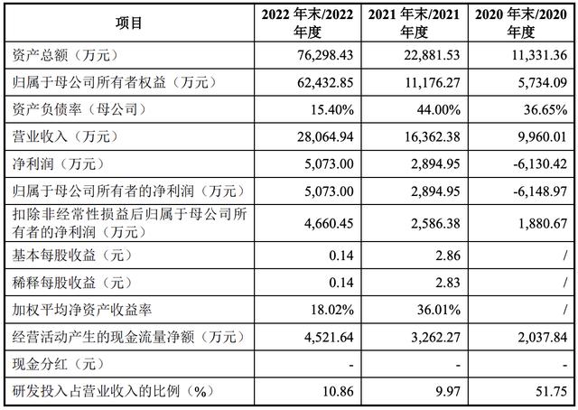 2020年、2021年和2022年,云舟生物的营收分别为9960.01万元、1.64亿元和2.81亿元;净利润分别为-6130.42万元、2894.95万元和5073.00万元,扣非后净利润分别为1880.67万元、2586.38万元和4660.45万元,于2021年实现扭亏为盈。