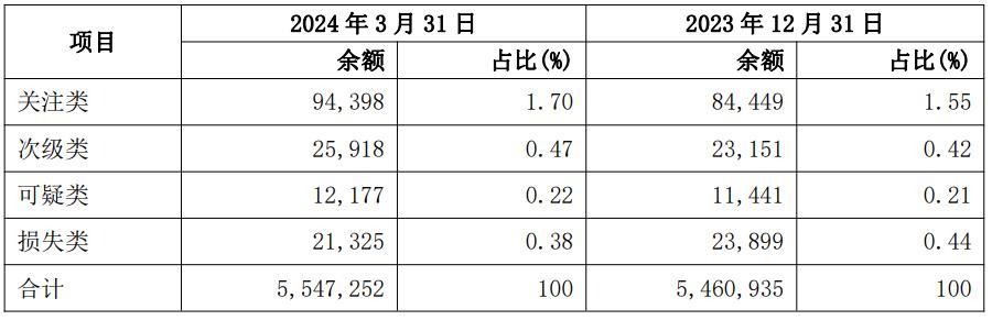 聚焦被视作“不良蓄水池”的关注类贷款,兴业银行截至2024年一季度末的该类贷款余额为943.98亿元,较2023年末的844.49亿元增长近百亿元,占比亦由1.55%上升0.15个百分点至1.70%。