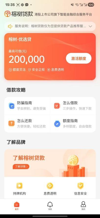 度小满之外,马上消费安逸花首页则显示年化利率为(单利)7.2%—24%,而榕树贷款则显示最高可借额度,并没有显示相关利率。