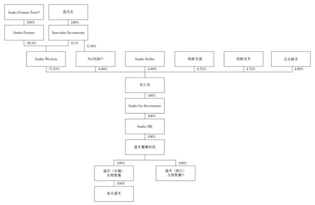其中,Sunho Wisdom由盛禾生物执行董事兼董事会主席(即董事长)张峰控制。据招股书披露,张峰可行使Sunho Wisdom、No5XJR、Sunho Stellar的投票权,合计拥有盛禾生物约81.62%的投票权。