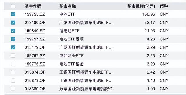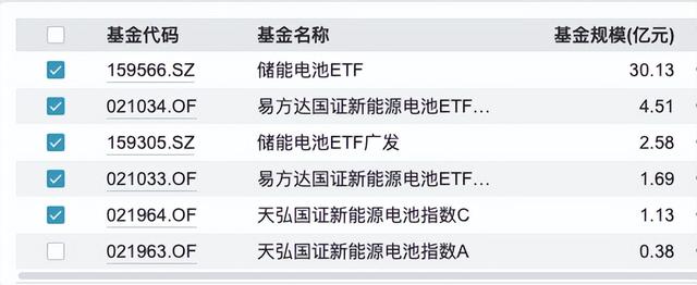 跟踪国证新能源电池指数(980027.CNI)的产品有6只,规模34亿,规模要小于前两个指数。