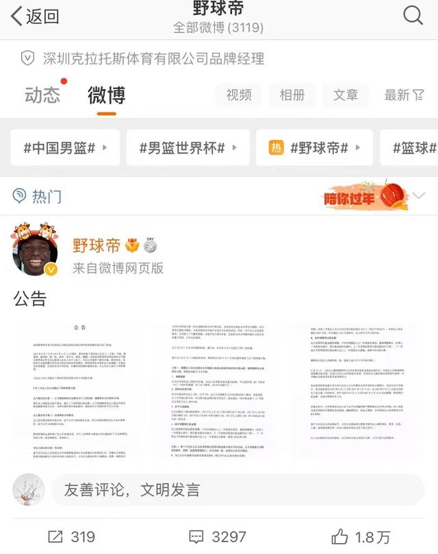 在最新的公告中,野球帝认为,作为一家全体成员平均年龄仅26岁的企业,创立的初衷即是对篮球的热爱。虽然满怀希望和热忱,也深知拥有关注同时需要承担的社会责任。