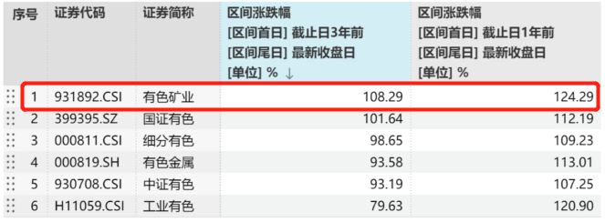 当有色金属价格(如铜价、金价、锂价)上涨时,上游企业的利润会直接、快速地提升,因此有色矿业指数表现出更强的价格弹性,贝塔值更高,在商品牛市或通胀环境中进攻性十足。从历史表现来看,截至最新,有色金属矿业指数近1年、近3年累计涨均优于主流有色指数。