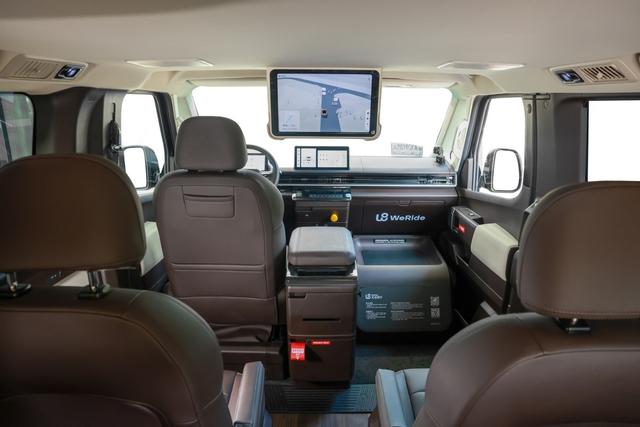 文远知行GXR拥有5018mm超长车长、1340mm车厢净高以及3100mm超长轴距,并首创取消副驾驶位,将前排空间更多释放给乘客,达成Robotaxi领域最佳“得房率”。二排有效腿部空间超0.5米,三排有效腿部空间超0.4米,充分满足每位乘客的伸展自由。