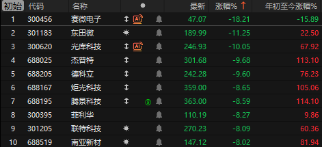 不过今天光通信板块大幅跳水,赛微电子被兑现和业绩暴雷暴跌超过18%,东田微、光库科技跌超10%。