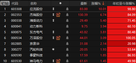 A股燃气轮机板块走强,应流股份涨停、杰瑞股份涨超6%,潍柴动力涨超5%。