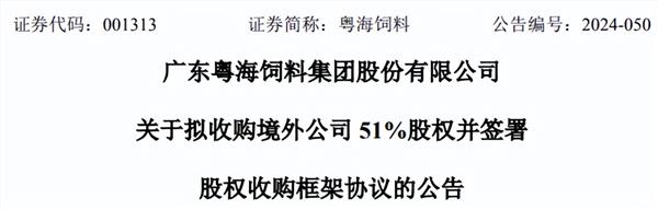 在加速推进预制菜业务的同时,粤海饲料正通过产业链延伸并购,不断强化主业协同性,并积极拓展海外市场版图。