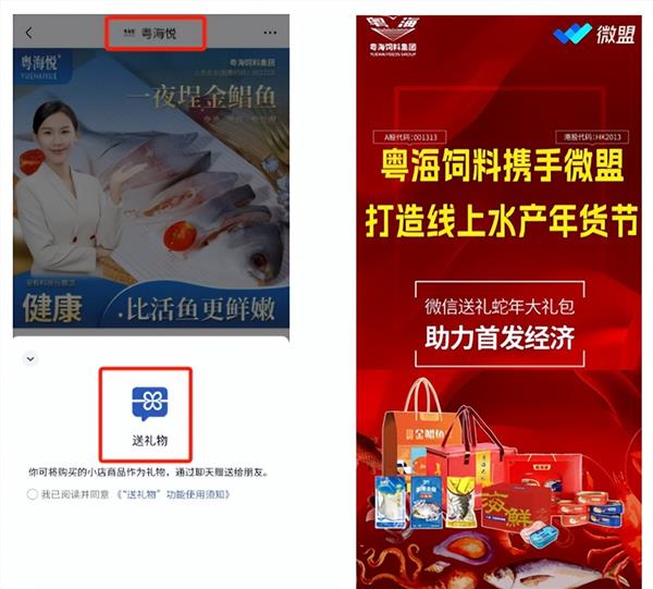 12月25日,粤海饲料携手微盟共同推出了“线上水产年货节”活动,用户可以通过微信直接向亲友赠送“蛇年金鲳大礼包”,这一活动不仅提升了粤海饲料的品牌知名度,也进一步拓展了其销售渠道。此外,微盟集团还为微信小店提供广告投放和精准营销服务,助力粤海饲料更好地开展广告营销活动。