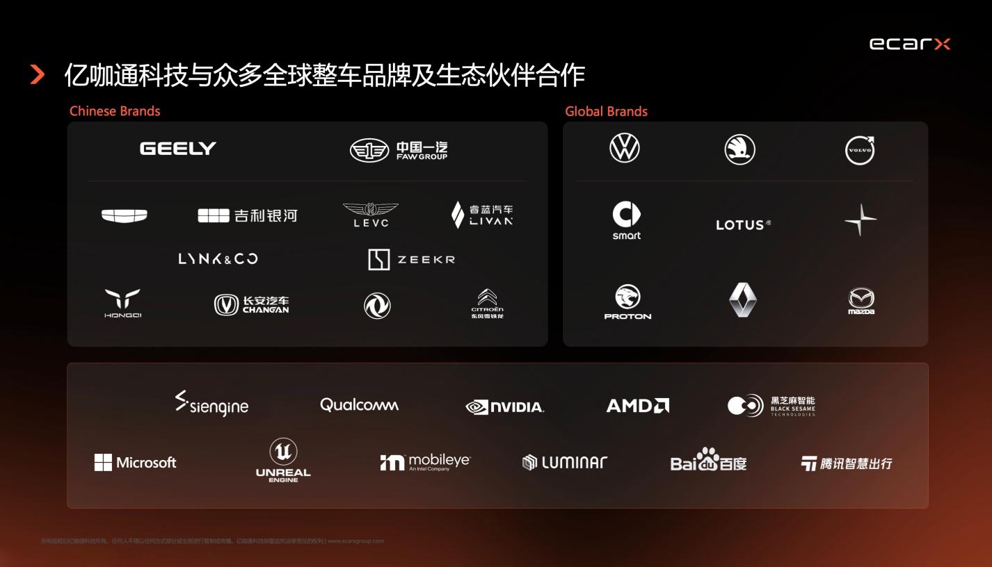 目前,亿咖通科技全球客户已拓展至18家汽车厂商、覆盖28个品牌,包括大众、斯柯达、一汽红旗、吉利银河、领克、沃尔沃、smart、莲花跑车、宝腾、长安马自达和东风标致雪铁龙等。