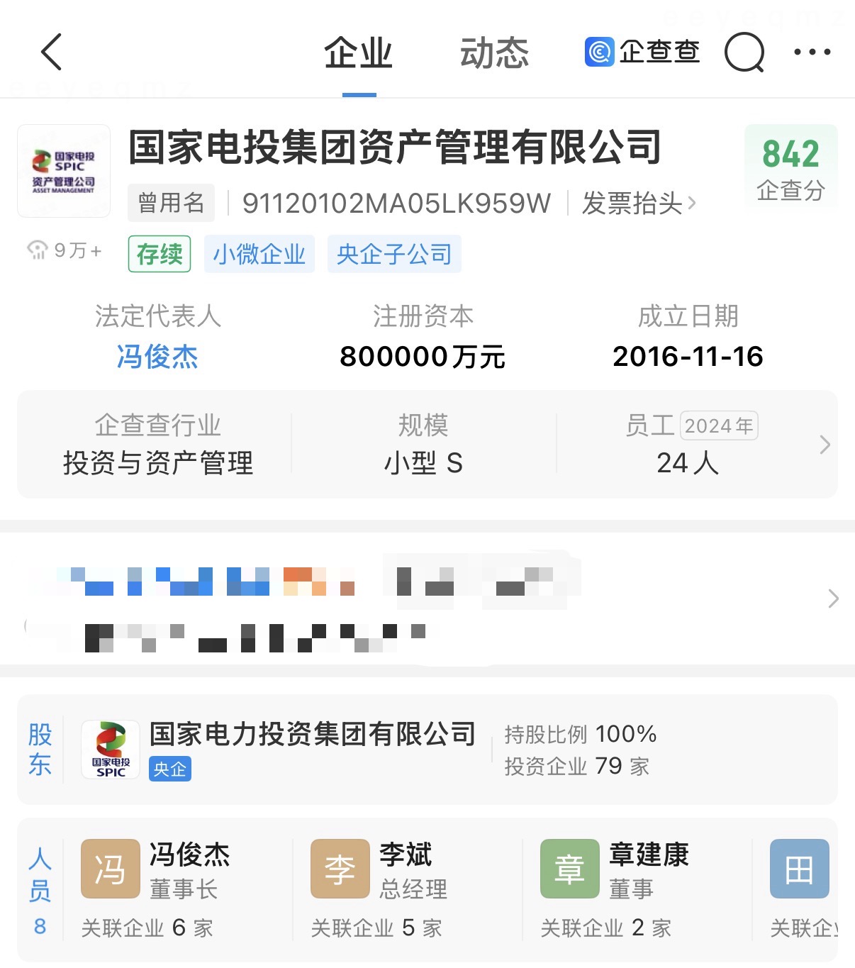 企查查显示,国家电投集团资产管理有限公司成立于2016年11月,法定代表人为冯俊杰,经营范围包括自有资金对外投资、资产管理、投资管理等,由国家电力投资集团有限公司全资持股。