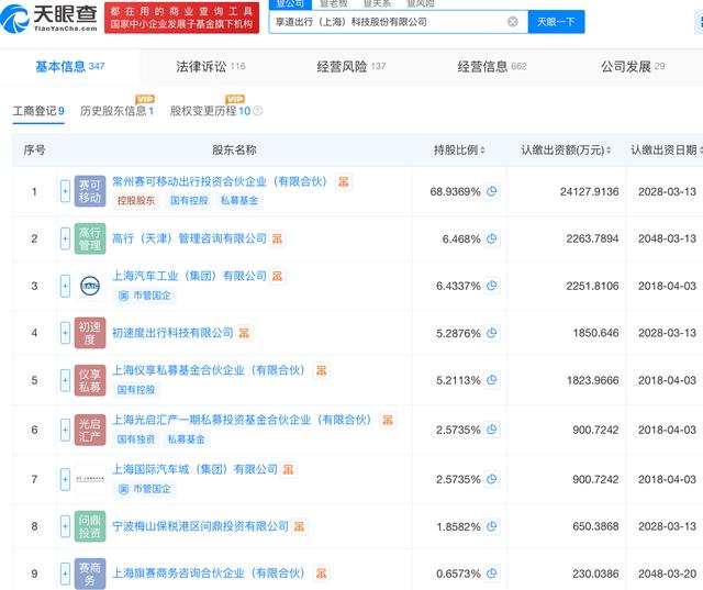 这意味着,上海旗赛对享道出行并未完成全部的出资义务。