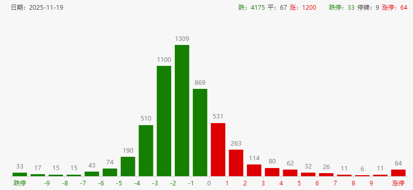 AI科技股的抛售潮延续,昨天纳指下跌1.21%,拖累市场情绪,今天亚太股市在昨天大跌的基础上窄幅震荡,等待明天凌晨英伟达财报公布,市场观望情绪浓重,A股大幅缩量、成交额不足1.8万亿。